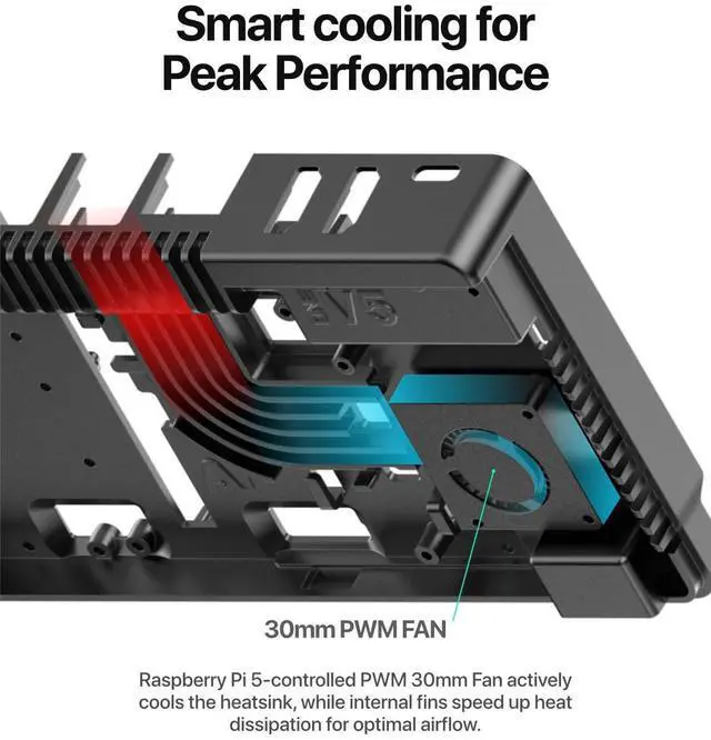 Built-in 30mm PWM Fan for greater thermal control, providing active cooling ensuring optimal performance during intense workloads