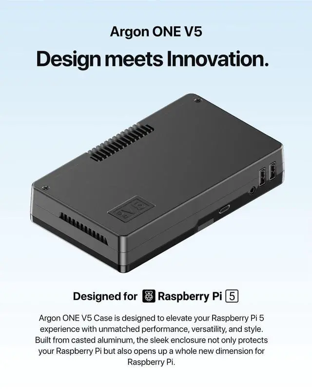 Argon ONE V5 Case Only for Raspberry Pi 5 ^^ Casted Aluminum case for Raspberry Pi 5, Expandable up to Dual M. 2 NVME Drives, Built-in DAC with Microphone, Dual HDMI Port, 30mm Fan
