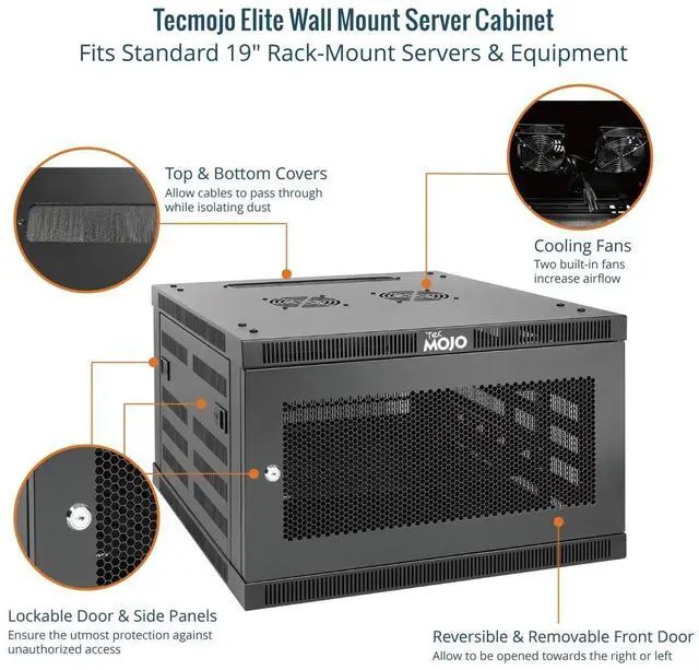 Tecmojo 6U Wall Mount Rack Cabinet, Heavy-Duty 176 Lbs High Load Capacity, 19 Enclosed Server Network Rack with Mesh Door, 23.6 Deep Elite Collection