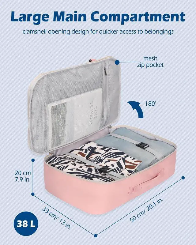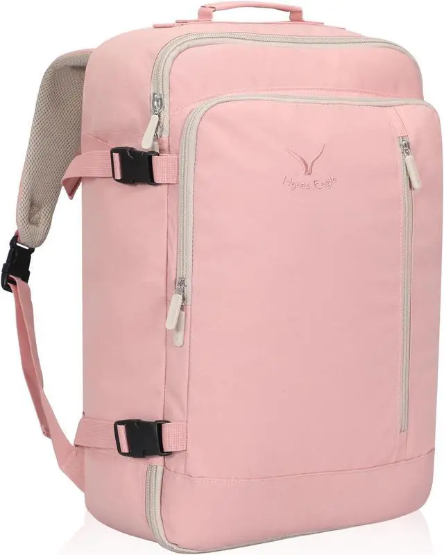 Hynes Eagle Carry on Backpack 38L Large Travel Backpack for Women Flight Approved Weekender Bag Laptop Backpack Men 15 inches Light Pink