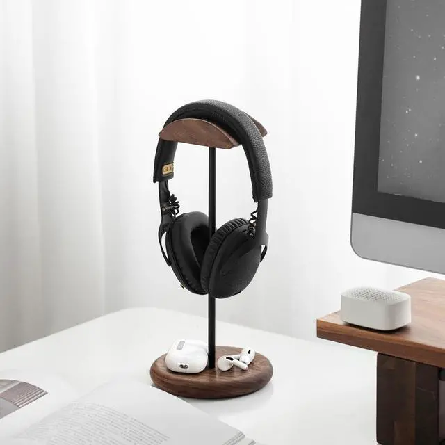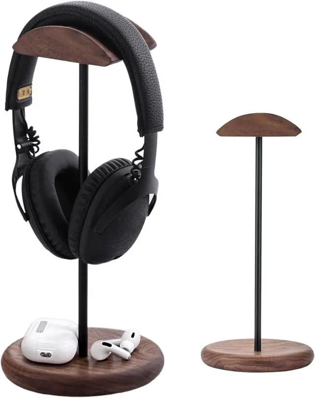 muso wood Walnut Wood & Aluminum Headset Stand, Desktop Headphone Stand, Headset Holder with Anti-Slip Pad, Headphone Holder with Storage Base for Most Gaming Music Headsets