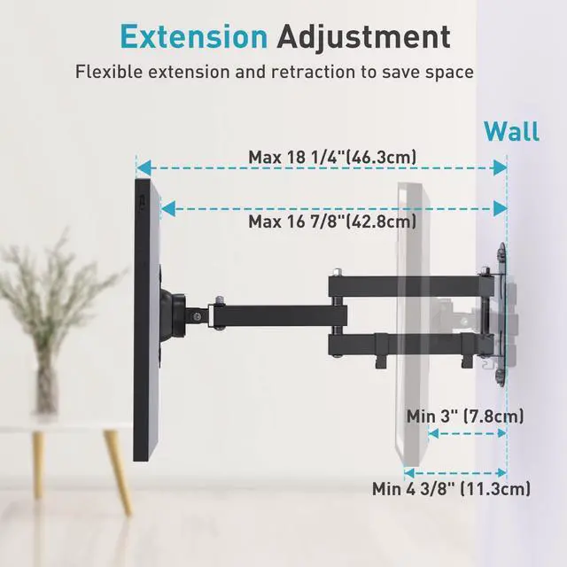 Save Space: This Echo Show 15 mount extends from 3.14" to 16.73", optimizing and saving space. Use the included Velcro cable ties to neatly manage the white cord for a tidy appearance