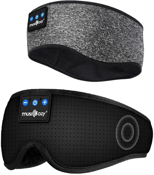 MUSICOZY Sleep Headphones Bluetooth Headband, Wireless Sleeping Headphones Mask Earbuds Built-in HD Speakers for Side Sleepers Women Men Running Insomnia Travel Yoga Cool Gadgets Unique Gifts, 2 Packs
