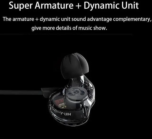 Excellent Sound QualityThe armature and dynamic unit combines complement to give more details of music show.You can hear powerful bass,energetic mids and clear treble.All in fast and dry v-shaped sound signature with overall balanced listening experience.