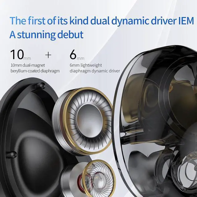 TRN-MT4 Professional-grade In-ear Monitor 10mm dual magnet dynamic driver Silicon crystal composite biocellulose diaphragm, iported polycarbonate housing.