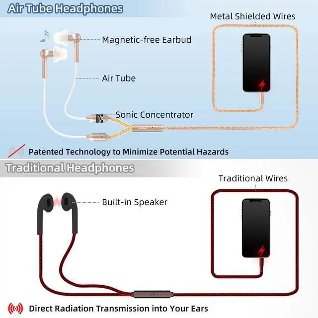 Innovative Sound Transmission Technology: ibrain airtube headphones use air tube technology instead of traditional wires for sound delivery. The air tube lengthens the distance between mobile phone and human body. These air tube earbuds not only offers a unique way of sound transmission but also helps to minimize potential harm.
