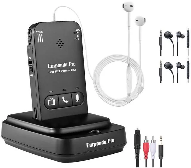 earpanda Pro Wireless TV Headphones for Seniors, with Additional Replacement Wired in Ear Earbuds with Mic (2 PCS)