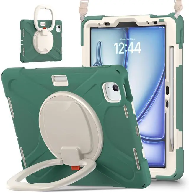 MEEgoodo Case for iPad Air 11 inch 2025 (M3) /2024 (M2) & iPad Air 5th/4th Generation 10.9 inch 2022 2020 &iPad Pro 11 inch 4th/3rd/2nd/1st Gen (2018-2022) with Pencil Holder & Stand & Strap, Emerald Green