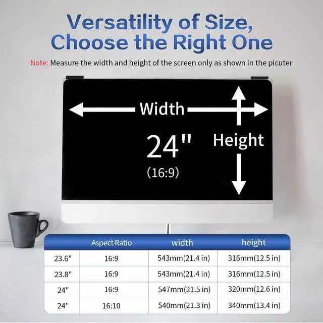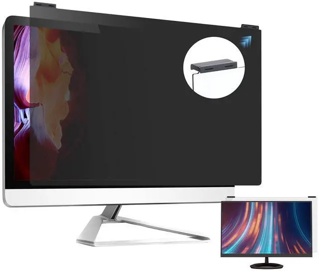 Put It On & Beauty in Design: Different with the adhesive privacy screen for computer monitor, Verponity 24 inch hanging computer privacy screen shield is to hang it directly on the computer to finish the installation and take it off when not in use without worrying about leaving traces of adhesive on the computer monitor. Adopted with the 9H hardness acrylic plastic material, it is durable and scratch proof.
