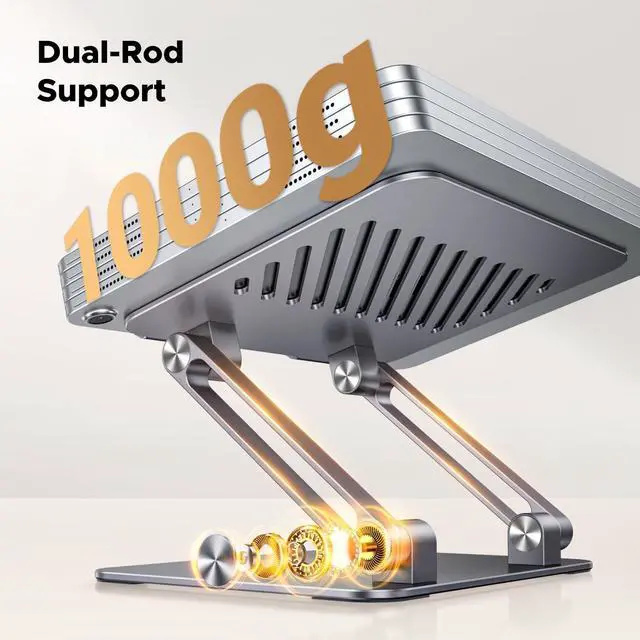 More Sturdy Design: Made of sturdy aluminum alloy metal for stability and durability. Dual rod Design gives your tablet a stable home