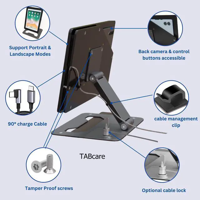 TABcare Anti-Theft Acrylic Case with EZ Foldable Aluminum Desktop Stand for Samsung Galaxy TAB Tablets (Black, TAB A9+ 11)
