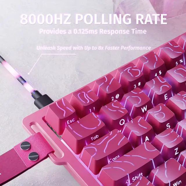 60% Ultra-fast Gaming keyboardThe ATTACK SHARK X68 mechanical keyboard uses magnetic pole switches,utilizing hall effect triggering technology,achieve ultimate speed and precision with an 8000Hz polling rate and ultra-low latency of just 0.125ms.Paired with an ATTACK SHARK coiled cable, offering faster transmission speeds.Perfectly suited for typists and gamers, provides enhanced gaming and work efficiency.
