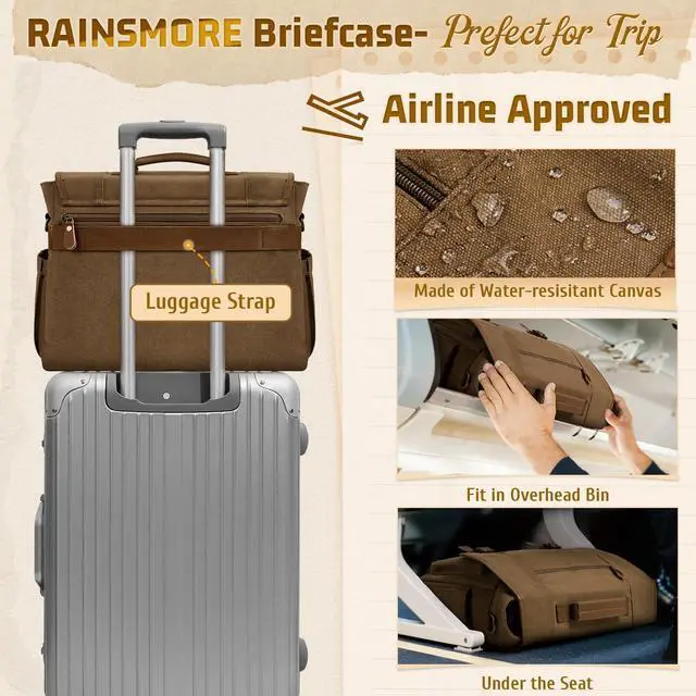 RAINSMORE Mens Messenger Bag 17-17.3 Inch Vintage Canvas Briefcase Water-resistant Large Computer Laptop Bag Rugged Satchel Shoulder Bag for Work Travel, Bookbag for College