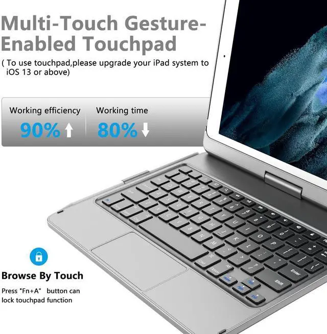 Multi-Touch Trackpad for ipad 9th Generation/8th Gen/7th Gen Integrated multi-touch trackpad with plentiful trackpad gestures,you c
