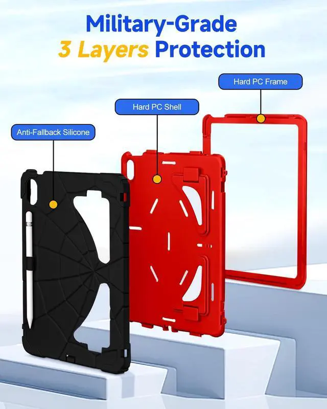 Drop Protection: This case for iPad 10th generation cover, case for iPad 11th generation features a three-layer construction made of hard PC and fimpact-resistant silicone bumper for full tablet protection. Camera protection, drop protection, scratch protection, shock protection