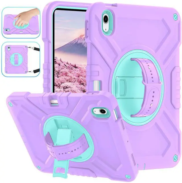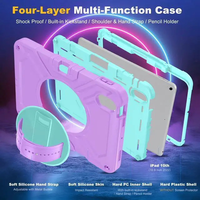 360° Rotating Stand & Silcone Hand StrapRotatable kickstand allows multi-angle viewing,pretty easy for movie watching and kids boys girls toddlers learning on the go. Soft silicone rotating handle strap prevents falling of for iPad 10th generation,featuring convenient use for teachers,students,waiters,doctors,nurses and conference presenters