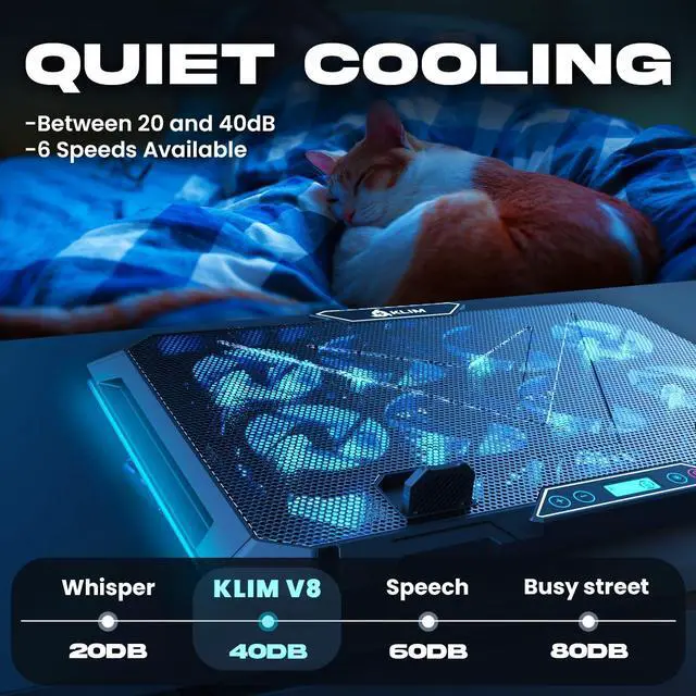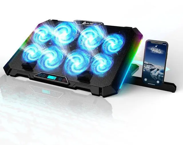 KLIM V8 Gaming Laptop Cooling Pad with 8 Fans + New Version + Gaming Laptop Cooler + Stable RGB Laptop Stand with Fan + Compatible up to 17" + 2 USB Ports + Phone Holder + 5 Year Assurance