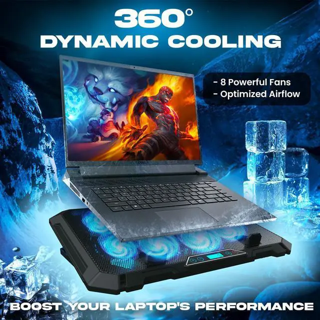 8 FANS FOR SUPERIOR COOLING: This laptop cooling stand features 8 powerful fans that can dissipate heat quickly and efficiently, keeping your laptop running cool even under heavy load.