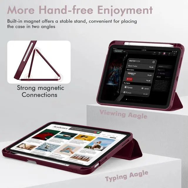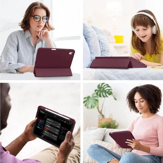 iMieet Case for iPad (A16)/iPad 10th Generation [11-Inch 2025/10.9 Inch 2022], Trifold Stand Smart Cover with Pencil Holder and Soft TPU Back, Supports Touch ID(Wine)