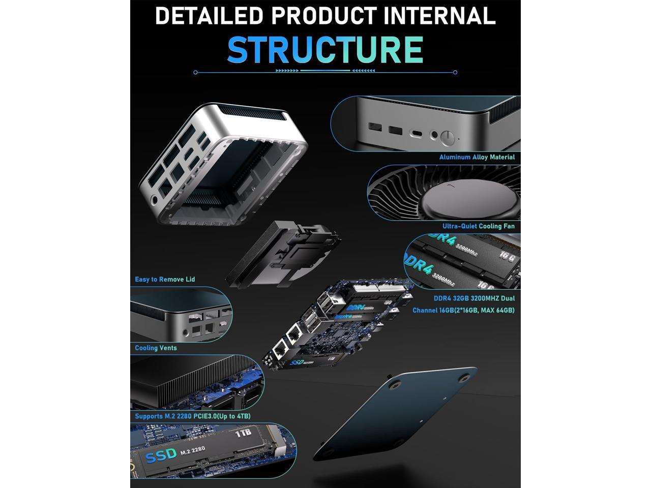 - 4K Ultra HD Triple Display-This mini computers is equipped with the latest AMD Radeon Vega 7 graphics card, with a frequency of up to 1800MHz. It can be connected via HDMI port, DP 1.4 port, and Type-C interface, with no restrictions on combination, supporting 4K 60Hz triple-screen display, allowing you to not only work effortlessly, play 4K videos, but also enjoy lightweight gaming, enabling you to fully enjoy the visual effects of entertainment and enhance work efficiency