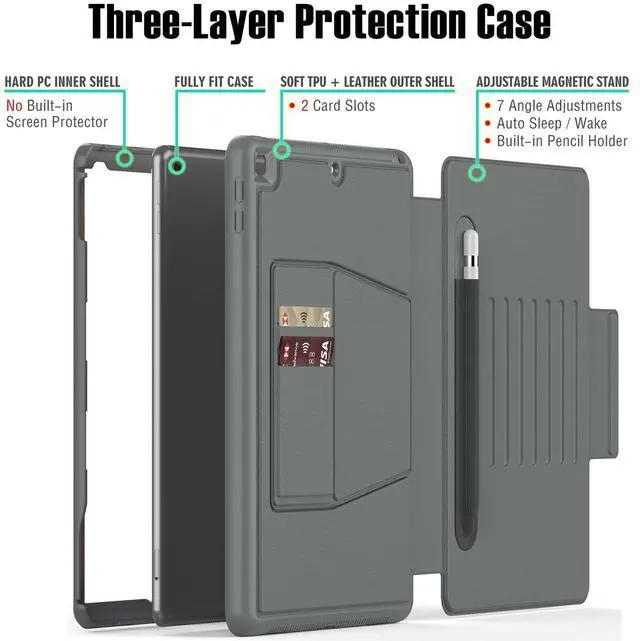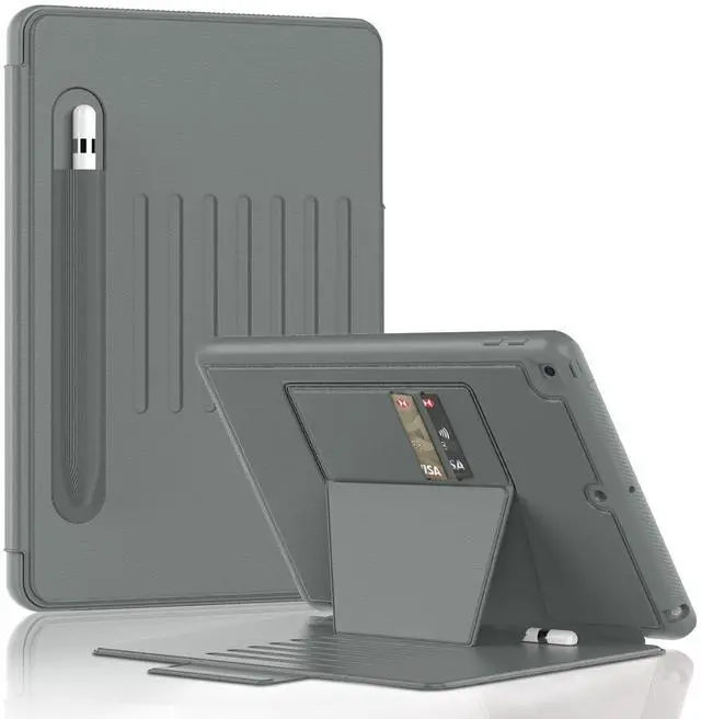 DUNNO Case for iPad 9th 8th 7th Generation(2021/2020/2019 Version), iPad 10.2 Case Strong Magnetic Cover with Pencil Holder & Card Pocket, 7 Viewing Angles Stand Case for iPad 10.2 Inch (Gray)