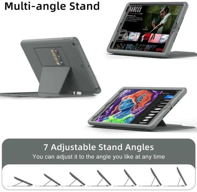 [7 Magnetic Angles] Compared to the usual tri-fold and flip cover, this iPad 10.2 case offers larger viewing angles. The super magnetic cover is also strong enough to hold your iPad up on the metal fridge.