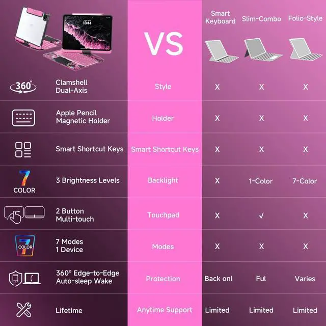 Illuminated Typing + 7-Color Backlight: This case with a keyboard is compatible with the iPad 11th generation and iPad 10th ge