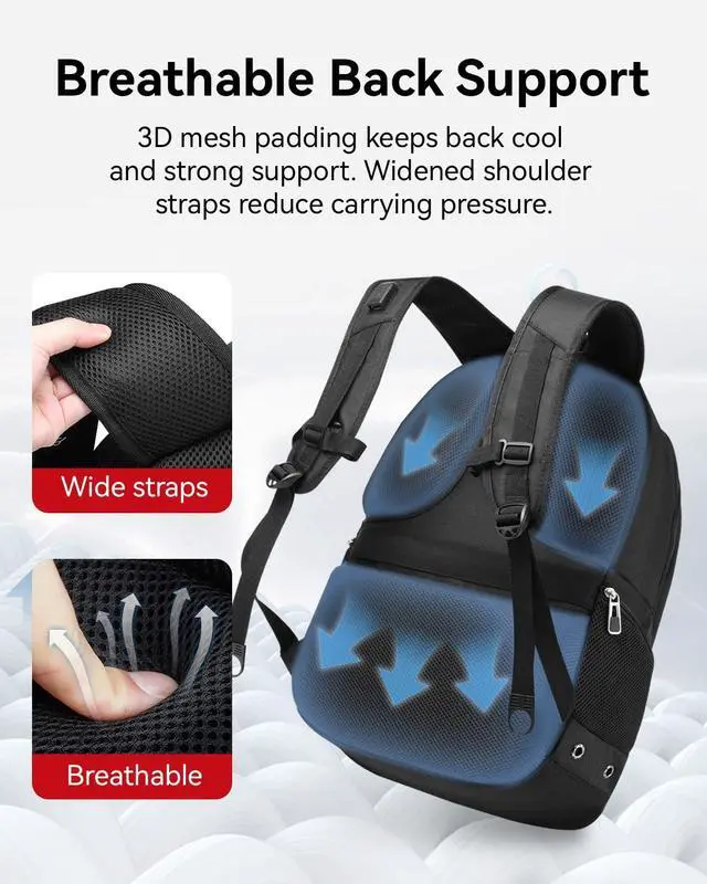 ALL-DAY COMFORT TRAVEL BACKPACK: Engineered with breathable mesh and 3D padding, this travel laptop backpack offers backpack comfort during long commutes or travel. Widened shoulder straps increase contact area, providing a travel-friendly support.