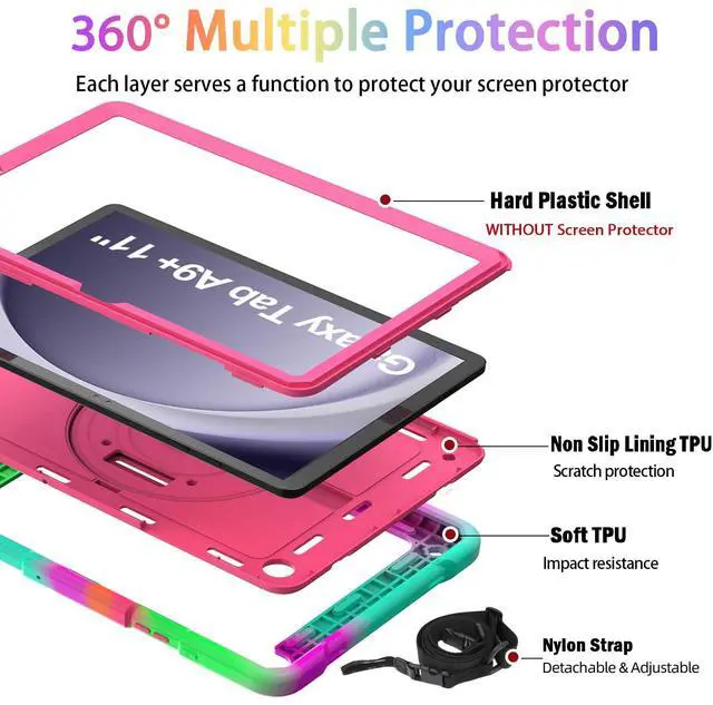 Full-Body Multiple ProtectionThis Samsung Galaxy Tab A9 Plus Case is made of 3 Layers Protection combined with PC front cover hard PC inner shell soft silicone outer shell. It is long lasting and easy installation. Providing secure protection defense like a glove for Samsung Galaxy Tab A9 Plus tablet