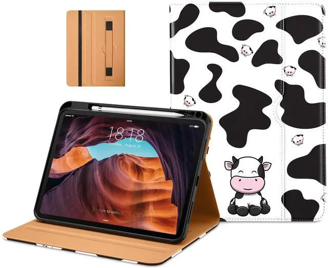 DTTO for iPad (A16) 11th Generation Case 11 Inch 2025, iPad 10th Generation Case 10.9 Inch 2022, Premium Leather Business Folio Stand Cover with Pencil Holder - Auto Wake/Sleep, Cow Print