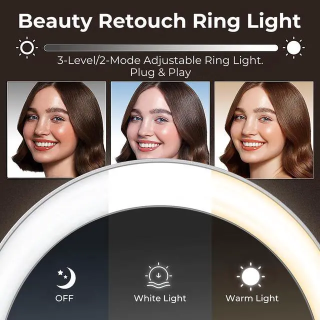 Built-In Adjustable Ring Light for Flawless LightingOur 4K webcam features an integrated adjustable ring light with dual lighting modes and three brightness settings, ensuring you look your best in any lighting condition. Perfect for conference calls, streaming, or online classes, the webcams light provides a soft, flattering glow for any setup.
