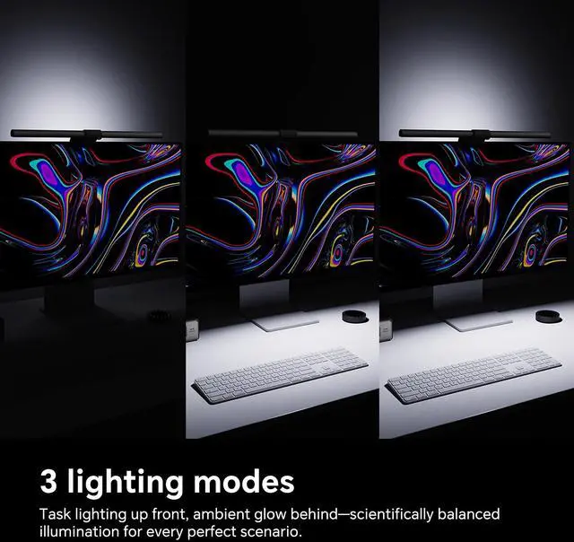 No Screen Glare & Space-Saving Design- Innovative asymmetrical optical design illuminates only your desk area, enhancing focus and immersion while eliminating screen glare. The scientifically designed weighted clip easily mounts on top of your monitor, saving valuable desk space.