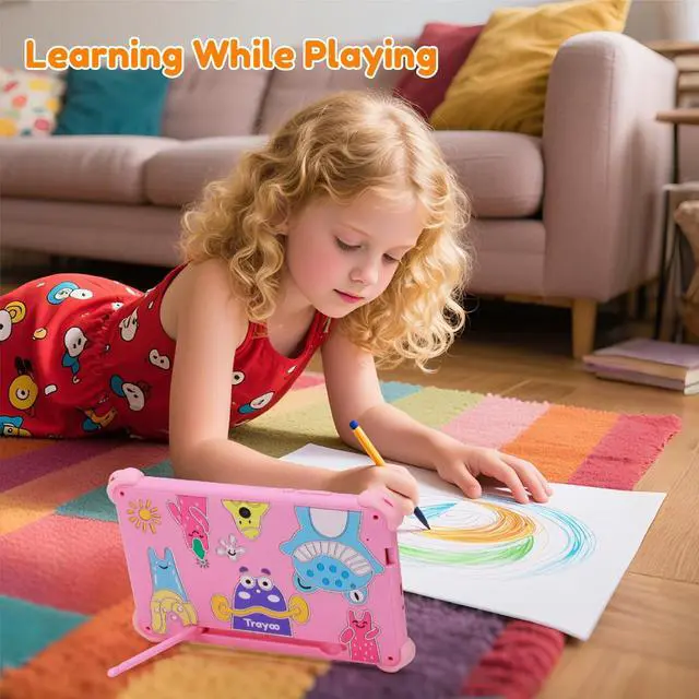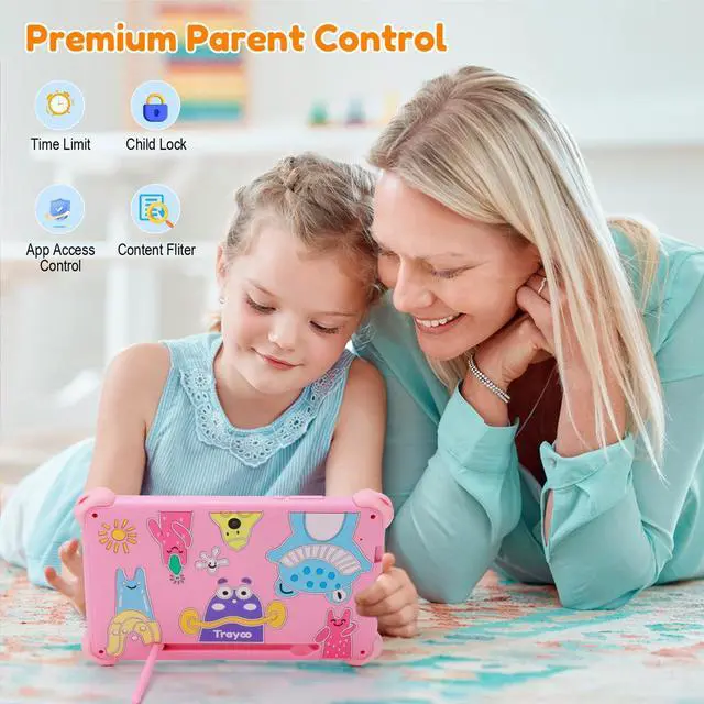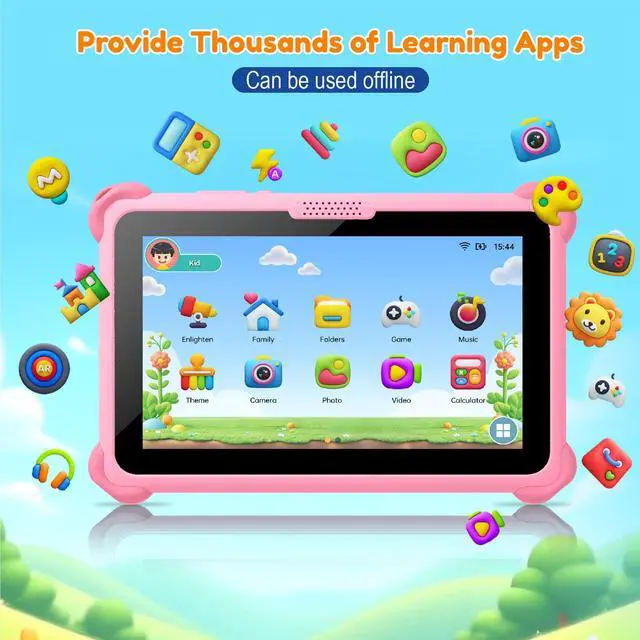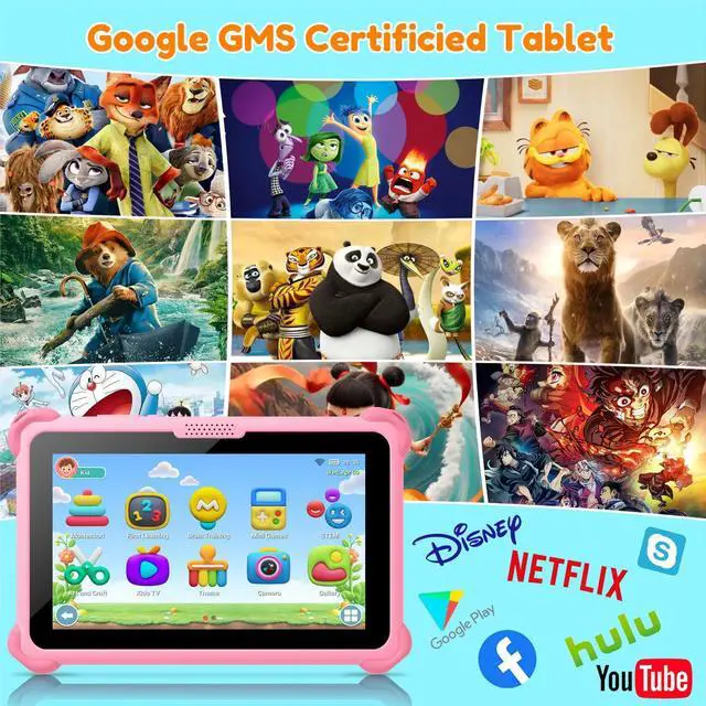 Eye Protective Screen7 inch tablet for kids with quality 1024*600 IPS HD display screen. Clear and bright screen provides outstanding visual experience when kids reading and watching the videos. Automatic brightness adjustment can better protect your