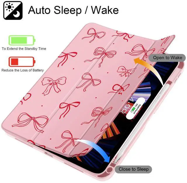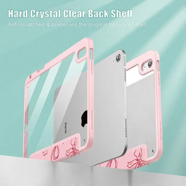 Lepeoac Case for iPad Air 11'' (M3 2025/M2 2024) 6th Gen/iPad Air 10.9 '' 2022 2020 Air 5th /4th Gen, Buit in Pencil Holder with Shockproof Cover Clear Transparent Back Auto Wake/Sleep, Pink Bows