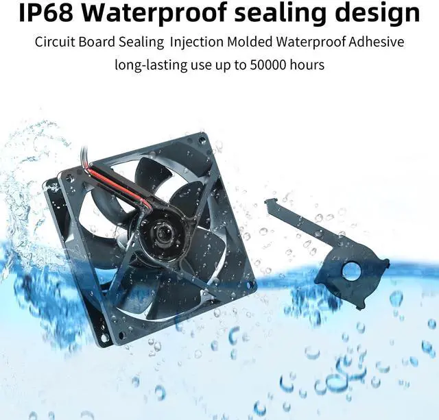 Upgraded IP68 TechnologyThe 92mm rv refrigerator fan equipped with an enhanced IP68 waterproof process. ensured outstanding waterproof performance, allowed the fan to operate flawlessly even in wet and challenging conditions.