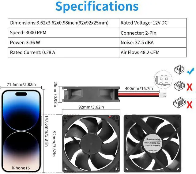 Upgraded Rust-Resistant Fan Grill92mm 2 pack high cfm exhaust vent terrarium tiny fan comes with an upgraded rust-resistant grill, which not only protects the fan blades but also adds to the overall durability and aesthetic appeal of the product.