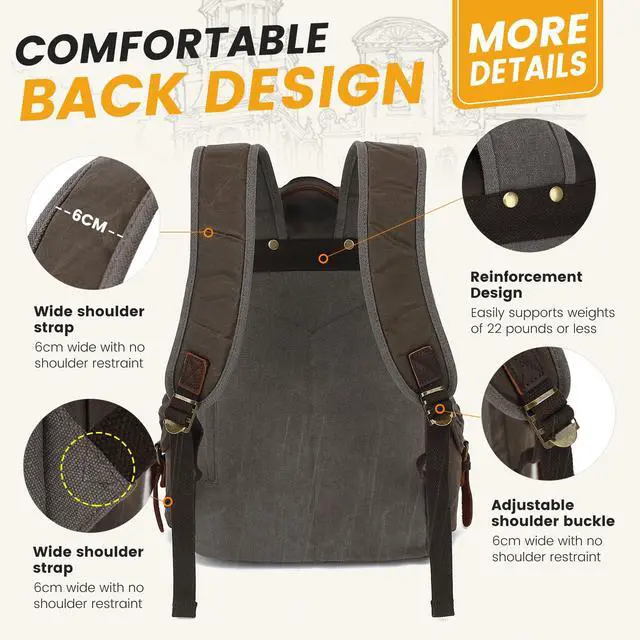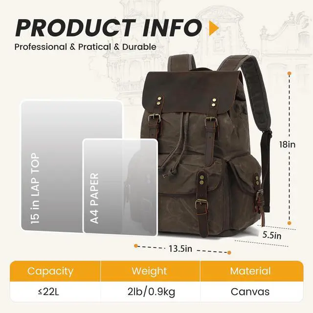 ADVENTURE-READY DURABILITY:Crafted from water-resistant waxed canvas and genuine leather, this backpack stands up to rain, wear and tearperfect for travel, hiking, and daily commutes.