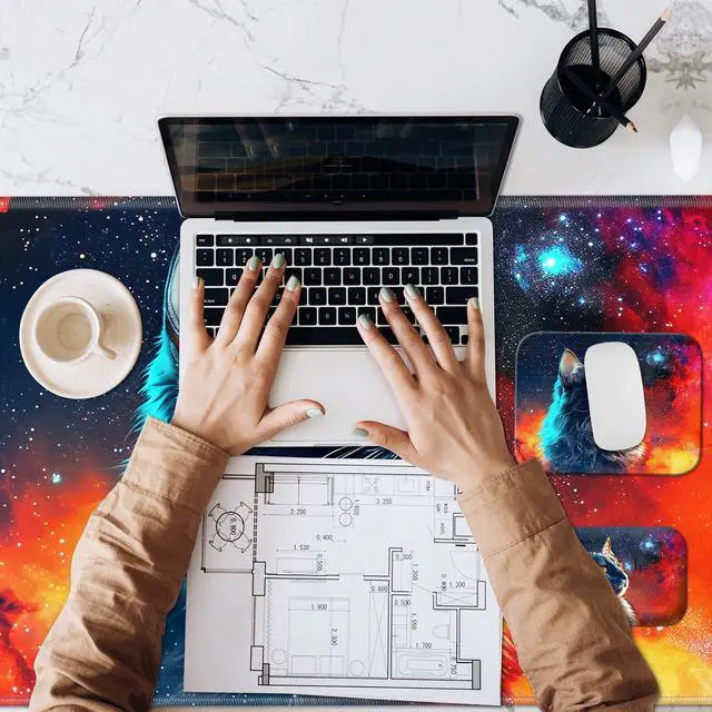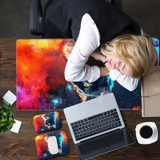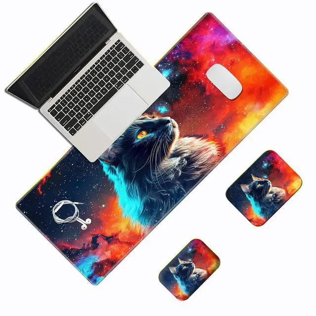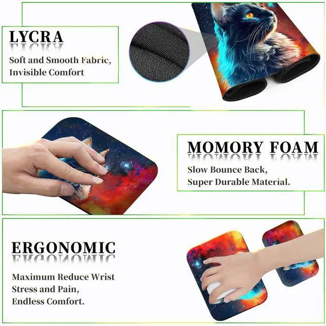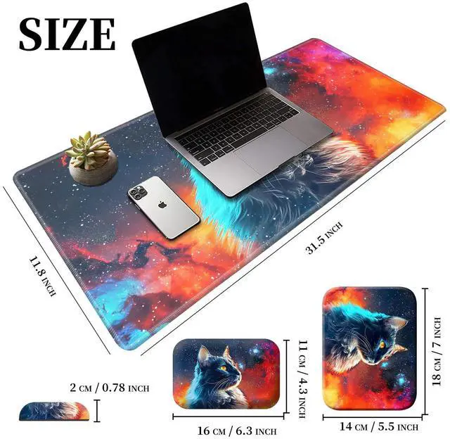 3-IN-1 CAT MOUSE PAD DESK WRIST REST PAD SET: Big mouse pad desk pad (12x24 inches) + wrist rest cushion pad for mouse (6.3 x 4.3 inches) + mouse pad small (5 x 7 inches) combo, compact design meets your work and gaming needs at any time, whether it's for home, office, or business trips.