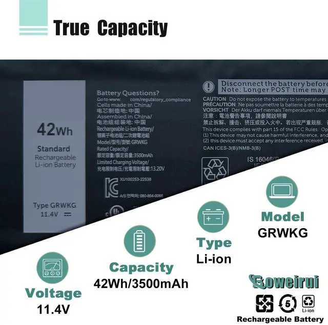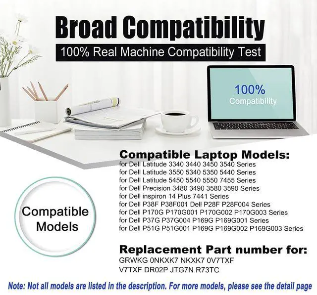 Quality AssuranceOur GRWKG laptop battery is highly compatible with the original R73TC DR02P GRWKG Battery for Latitude 3340 3440 battery and meets CE/FCC/ROHS/UL certified standards.