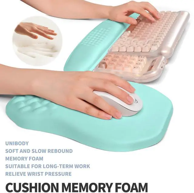 Gleamtide 2-in-1 Ergonomic Set, Wave Keyboard Wrist Rest and Massage Slope Mouse Pad Wrist Support, Rebound Memory Foam for Relieve Carpal Tunnel Syndrome and Wrist Pain (Light Blue)