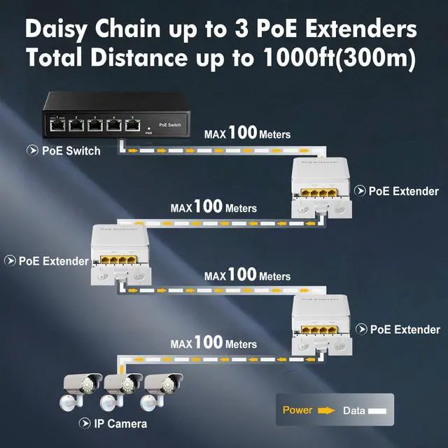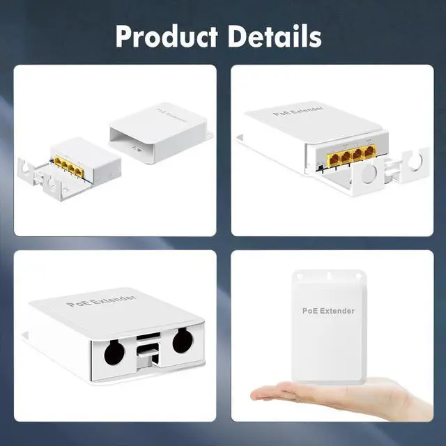 Gigabit PoE PassthroughInclude 1 PoE In 3 PoE Out Gigabit Ports, 10/100/1000Mbps rate. Powered by PoE network, no AC power supply required