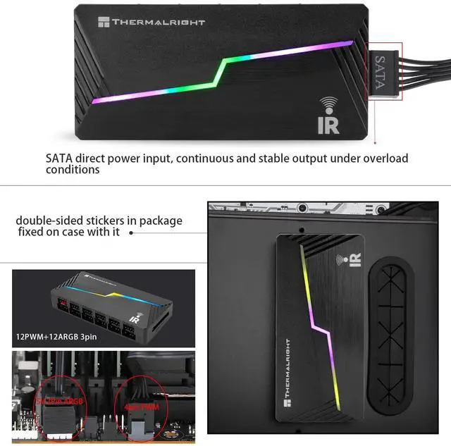 • [Stable Output] The ARGB and FAN Hub X12 IR series are SATA power direct outputs that maintain stable output under high loads. SATA wire is purchased by yourself and is not included with this product