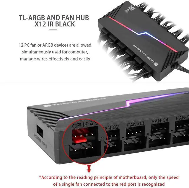 Thermalright ARGB and Fan HUB X12 IR Black,12-Port 4Pin PWM Controller,5V-3pin ARGB,Supports 12 Fan Interface Connections and Comes with A Remote Control for Lighting, Without Sata Cable Included