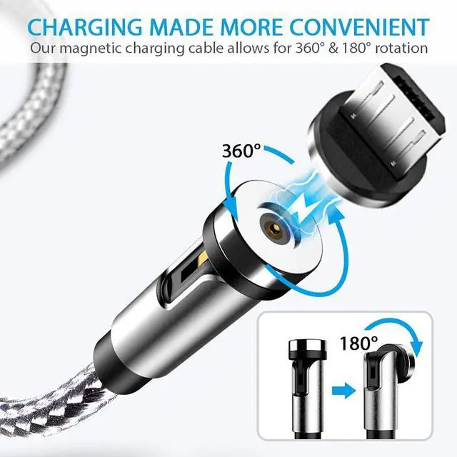 Terasako Magnetic Charging Cable 5-Pack (3/3/6/6/10FT), 540° Rotating Magnetic Phone Charger Cable with LED Light, 90° Angle Connector, Nylon-Braided Cord