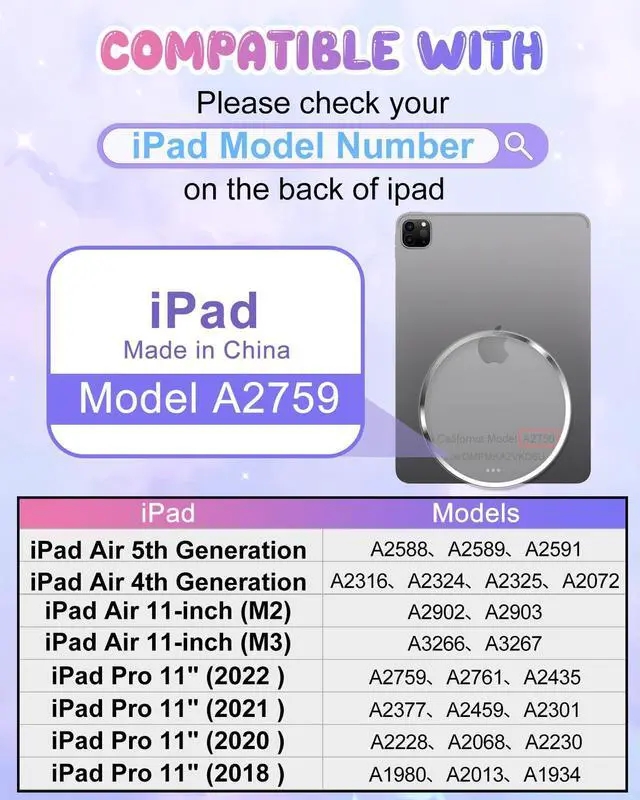 Compatibility: This case is only compatible with iPad Air 11 Inch M3 2025 & M2 2024, Air 6th/5th/4th Generation, Pro 11 Inch 4th/3rd/2nd/1st. Note: It does not fit other models