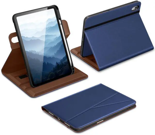 DTTO for iPad A16 Case, iPad 11th / 10th Generation Case (2025/2022), 360 Degree Rotating Premium Leather Folio Stand Cover with Pencil Holder, Navy Blue