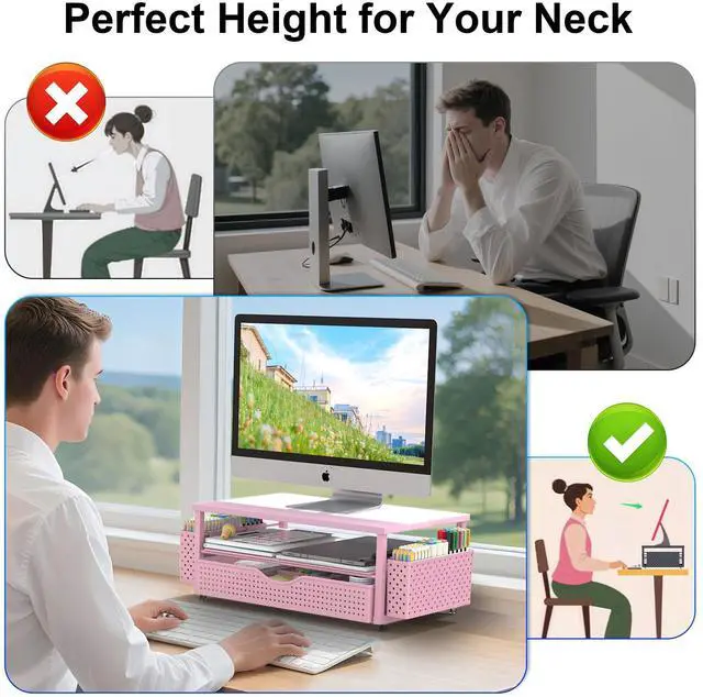 Ergonomic design: Raise the monitor to eye level for the most comfortable viewing experience, relieve your neck, back, waist, help you develop a good posture and provide a neat workspace.experience.