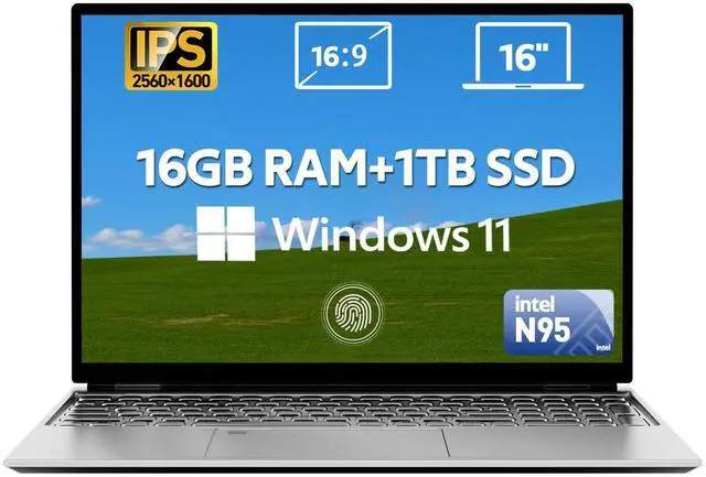 Tunoyee Latest 16'' Laptop Computer 2560 * 1600 FHD Display, 16GB RAM 1T SSD, 12 Gen N95 Processor(Up to 3.4GH z), Compatible with Windows 11 Laptop, 180° Open Angle, Backlit Keyboard, WiFi, USB-A&C