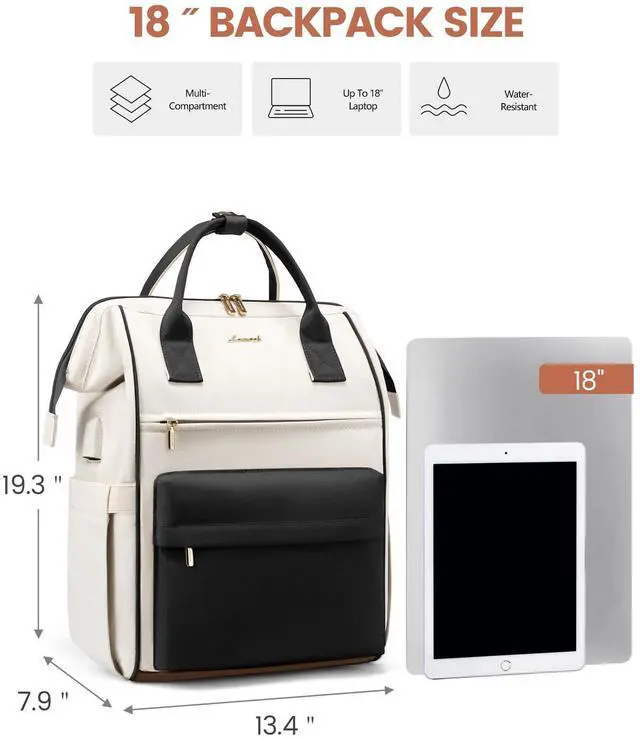 [Wide Open Design Laptop Bag]This laptop bag for women features wide-open main compartment for instant access to your 18" laptop. With 2 compartments and 16 strategically placed pockets, it effortlessly organizes textbooks, medical supplies, and all your travel essentials - ensuring users can locate items in seconds. Perfect as work bags for women or nurse bag, teacher bag,travel bag,college backpack,etc.