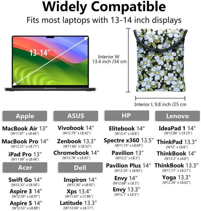 Wide Compatibility: In 13-14 inch capacity, we are compatible with all 13-14 inch laptops. Compatible with MacBook Air 13 2010-2020, MacBook Pro 13 2008-2020; Dell Inspiron 13. It can be Apple Macbook case, Dell laptop cover, HP laptop cover, Contact laptop cover